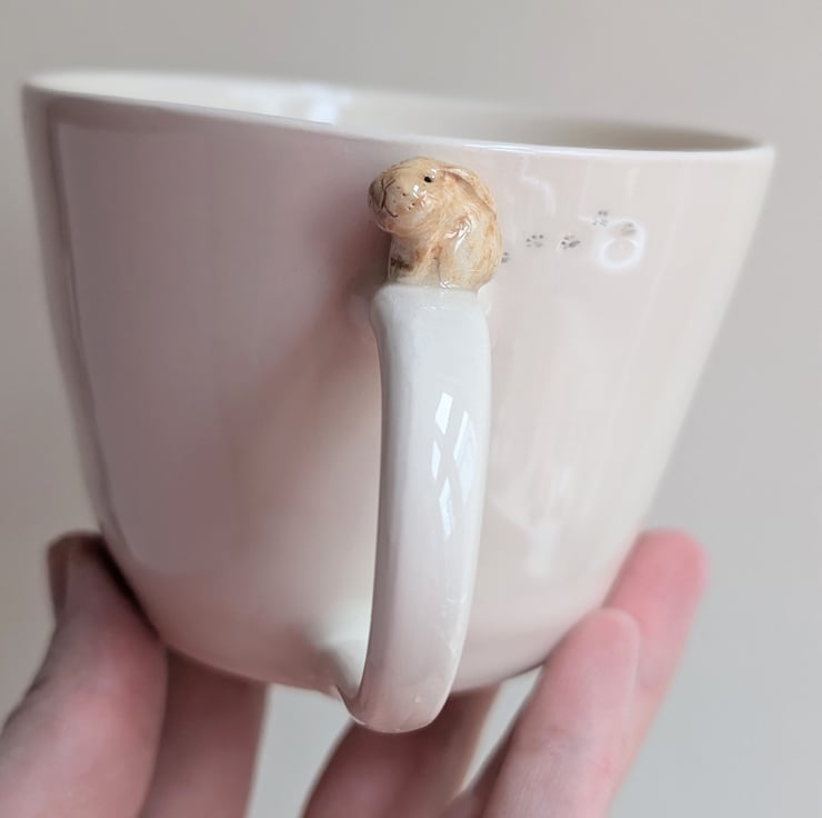 I thought it would be a good idea to make a unique cup with a little bunny rabbit sitting on the handle to make you smile and add some fun to a lovely cup of tea or coffee