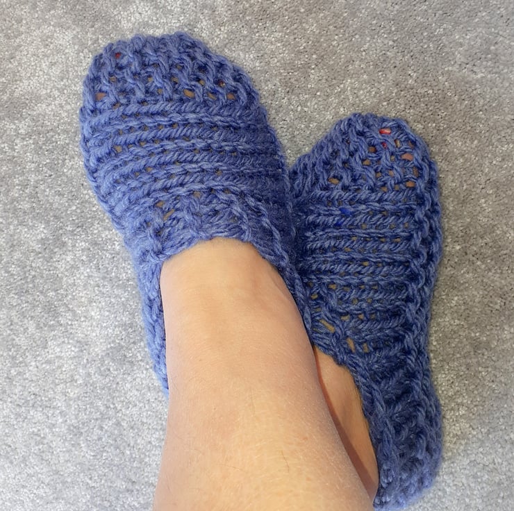This hand knit PATTERN is for a pair of slippers. The slippers fit size: UK 5 (EU: 35/37). The length of foot is 21 cm or 8.25 inches. Knitted in super chunky yarn using a pair of 10 mm knitting needles.