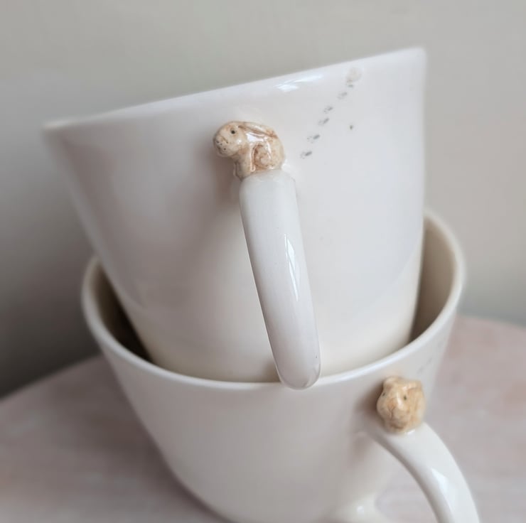 I thought it would be a good idea to make a unique cup with a little bunny rabbit sitting on the handle to make you smile and add some fun to a lovely cup of tea or coffee