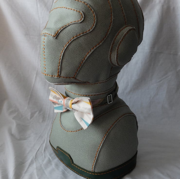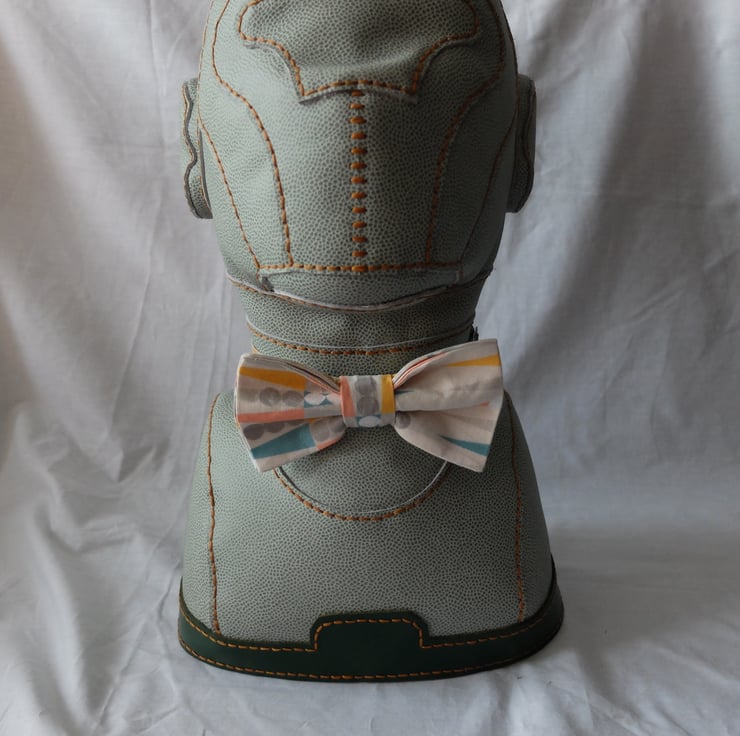 Ready-tied bow tie with adjustable band and hook fastening at back.
