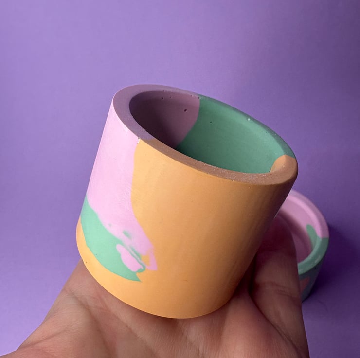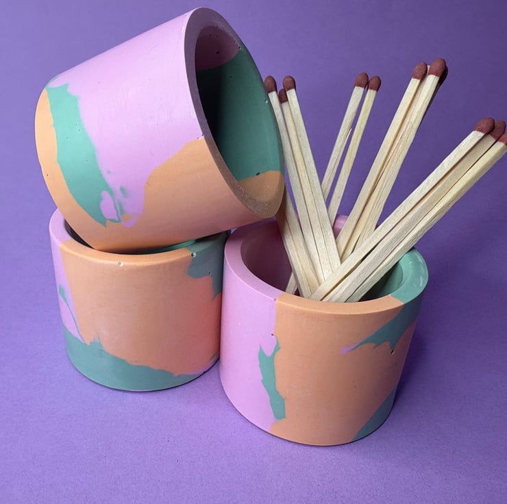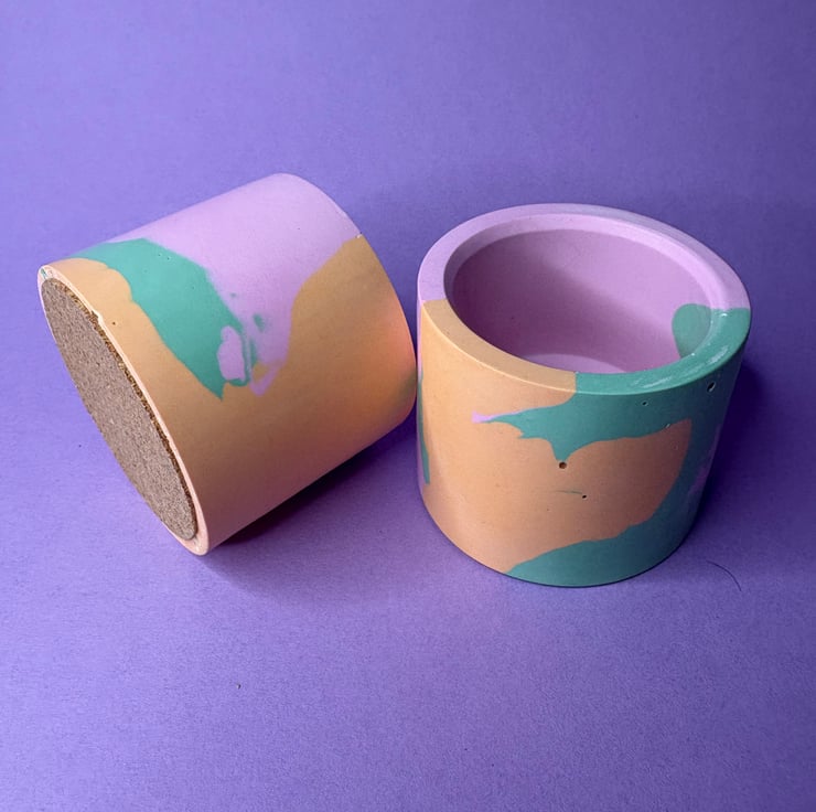 Made using eco friendly Jesmonite. The pots are hand poured and so some small bubbles are to be expected this is a natural occurrence and so not a flaw in the item.