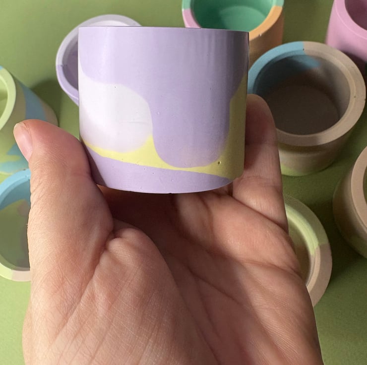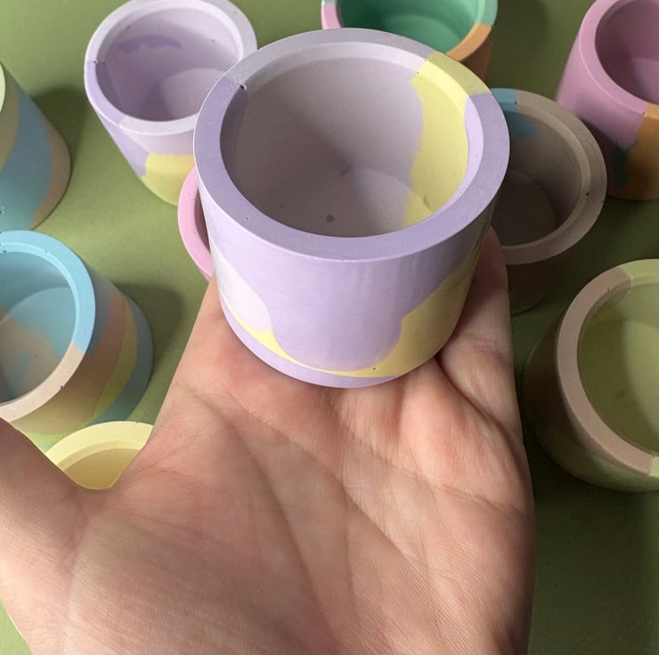 Made using eco friendly Jesmonite. The pots are hand poured and so some small bubbles are to be expected this is a natural occurrence and so not a flaw in the item.