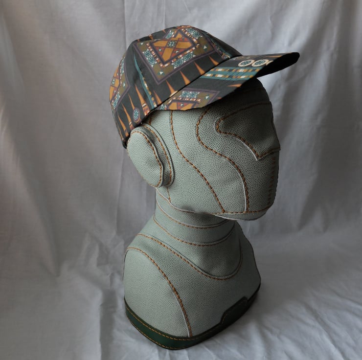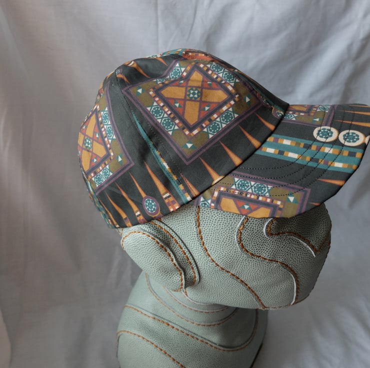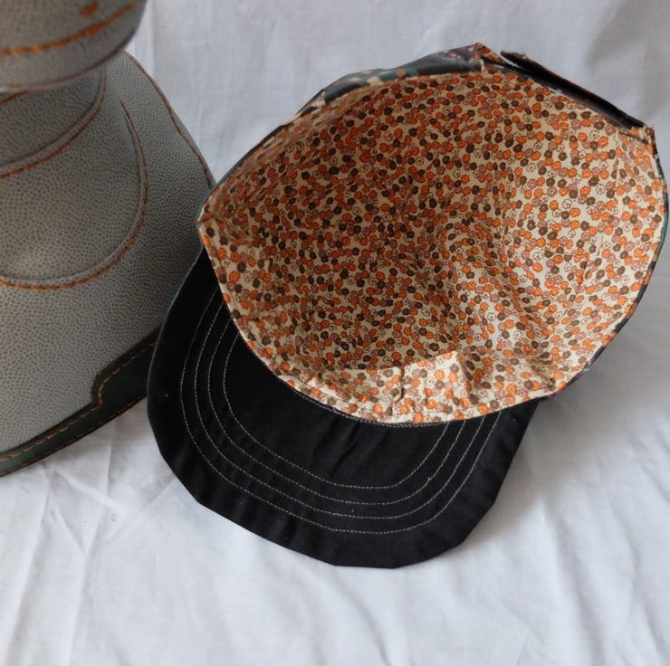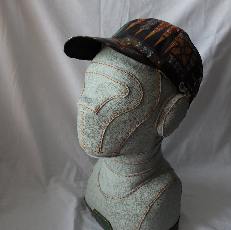 All are made in Backgammon-themed fabric, with a fairly stiff bill. They are lined in contrasting fabric and have a size adjustment at the back using velcro.