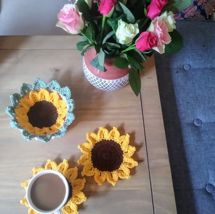 Bring some sunshine into your home with these beautiful sunflower coasters! They'll be a real talking point when your friends come over for coffee!