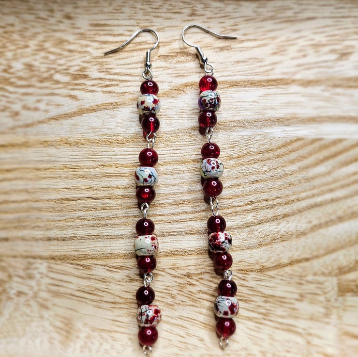 Red Beaded Dangle Earrings