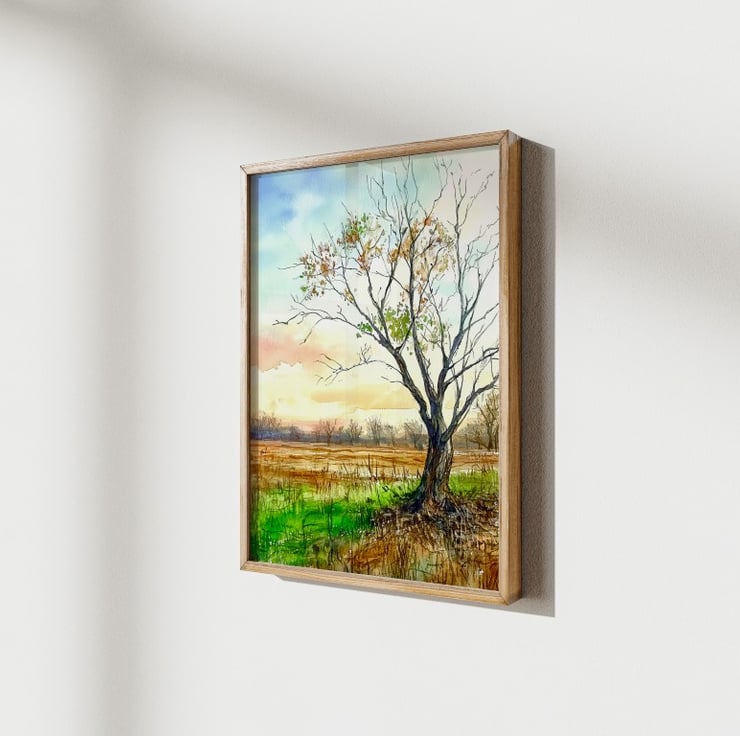 Furthermore, this painting is perfect for those who appreciate seasonal beauty and the elegance of watercolor art. Whether displayed in a cozy home, a nature-inspired space, or as part of an art collection, Autumn Tree in Open Field Watercolor evokes a sense of peace, reflection, and nostalgia.