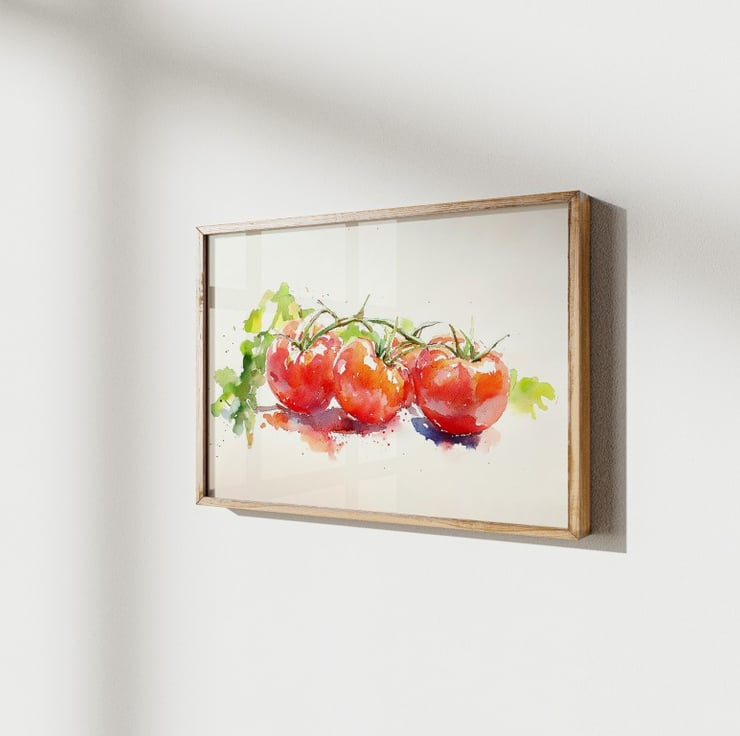This painting is a perfect addition to a kitchen, dining area, or any space that celebrates food, nature, and artistry. Whether you are a lover of farm-fresh produce, a culinary enthusiast, or an art collector, Tomato Watercolor Still Life Painting brings a cheerful and organic touch to your decor.