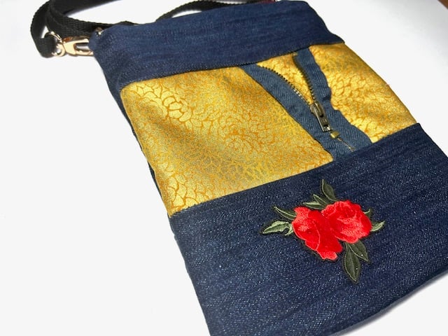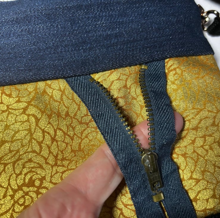 The gold fabric went well with the dark blue denim and I wanted to add a zip as an artistic addition.