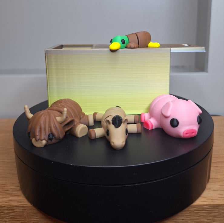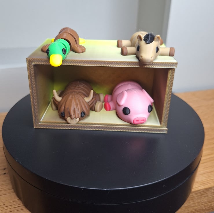 Welcome to my miniature farm animal collection. This adorable box set features a pig, horse, duck and highland cow. These articulated animals fit snuggly into a colourful box with a siding lid to stop them from wandering off. These make an ideal gift for children. why not start a collection, other sets available are marine life, and family pets.