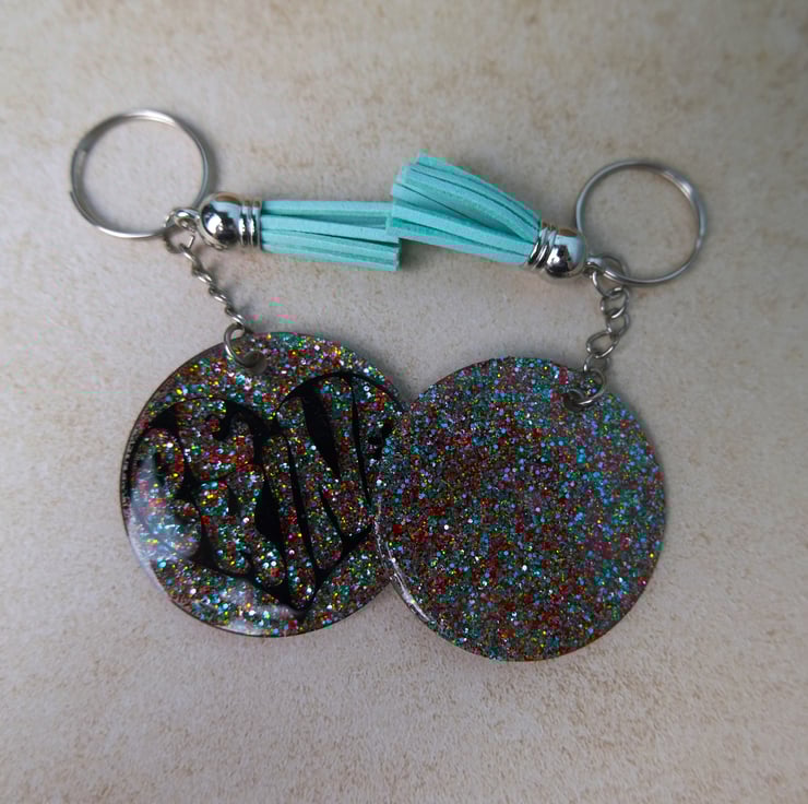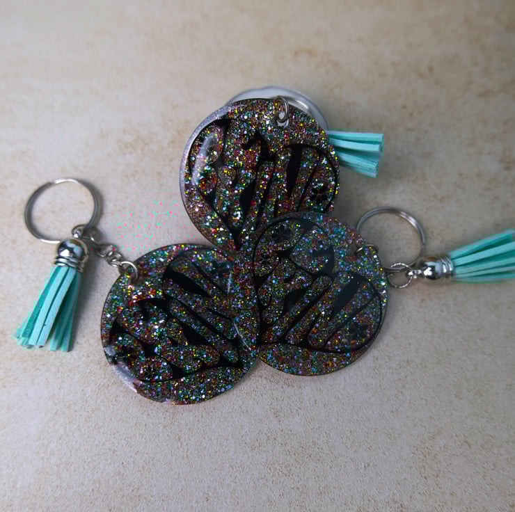 Crafted from high-quality acrylic and resin. Measuring 5cm in diameter with a total height including the chain of approximately 10cm.
