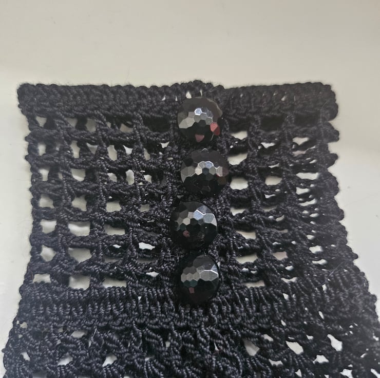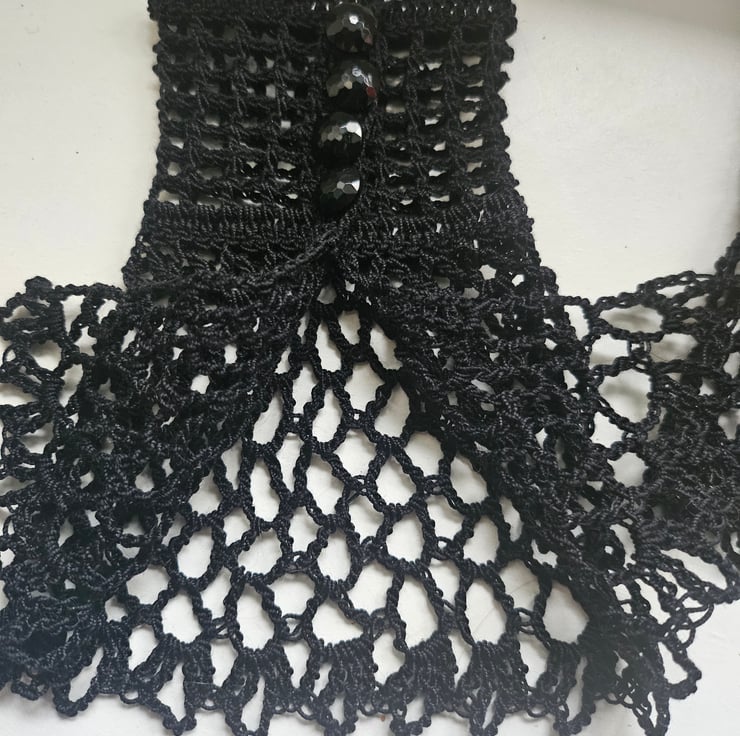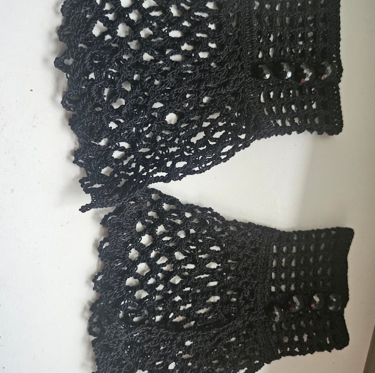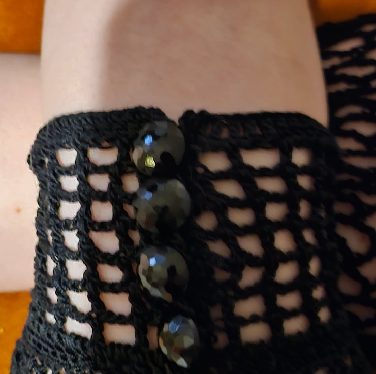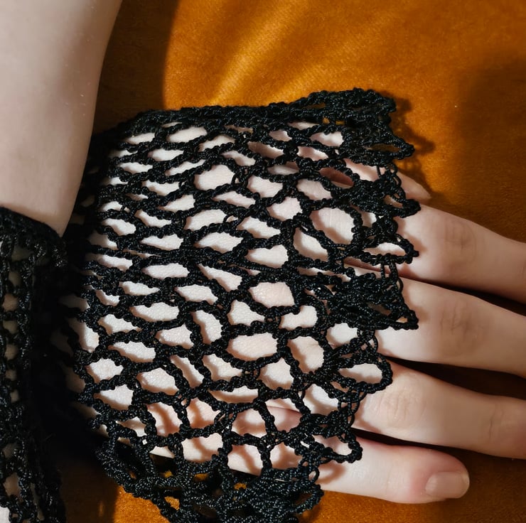 Beautiful jet black Lacy Wrist Cuffs. Crocheted using mercerised cotton.