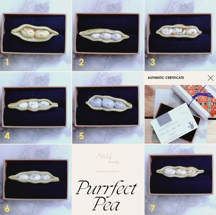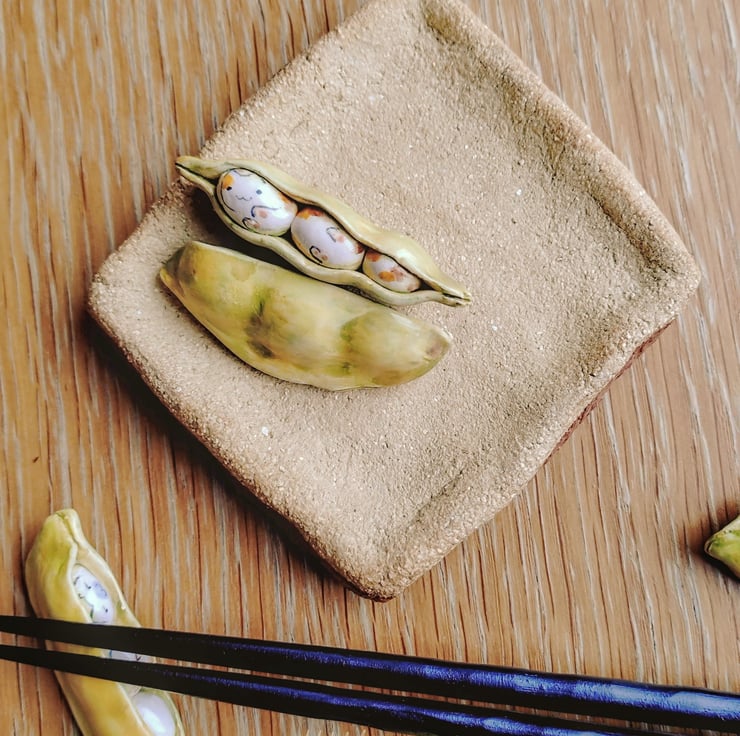 The broods of kittens living in the Purrfect Pea chopstick rest. Isn't it a treat? It's made of ceramic, nice and sturdy, and it's just the thing for keeping your chopsticks clean when you're not using them. Plus, it's ever so cute, and adds a bit of fun to your table, doesn't it? Perfect as a little gift too, if you're stuck for ideas. There you have a purrfect choice!