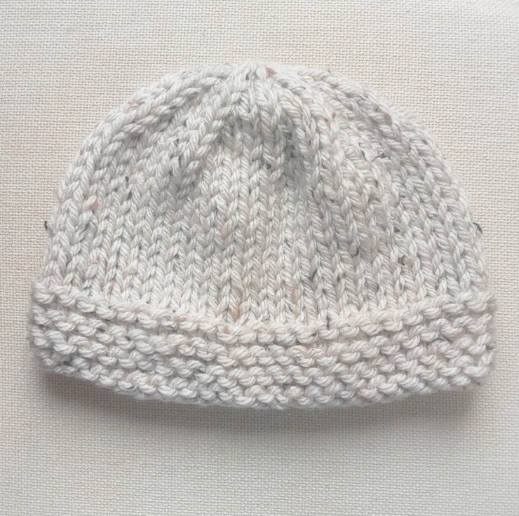 This hand knit PATTERN is for a chunky hat. To fit: Small (Medium). Circumference: 48 (52) cm or 19 (20.5) inches. The hat is knitted using super chunky yarn and 10 mm knitting needles. The hat is knit flat and seamed.
