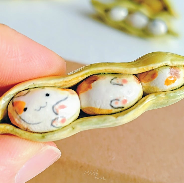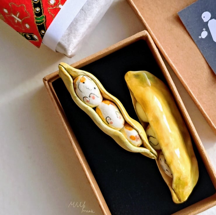 Meet the Mikemaru family! The brood of kittens living in the Purrfect Pea chopstick rest. Isn't it a treat? It's made of ceramic, nice and sturdy, and it's just the thing for keeping your chopsticks clean when you're not using them. Plus, it's ever so cute, adds a bit of fun to your table, doesn't it? Perfect as a little gift too, if you're stuck for ideas. There you have a purrfect choice! We also offer saver set options, just brow through our shop and pick your purrfect pieces.