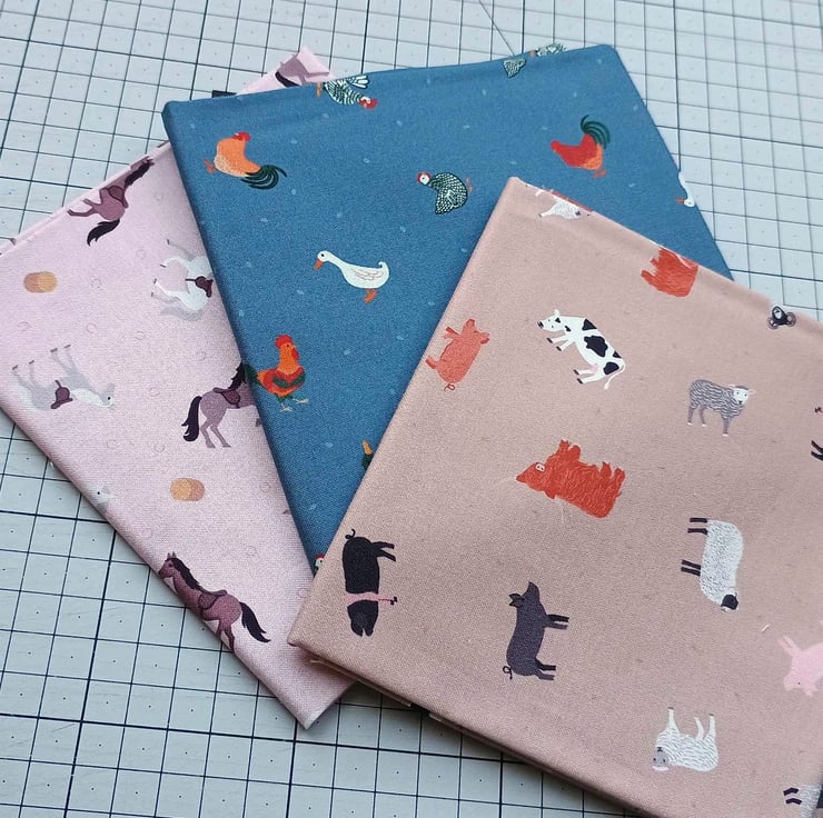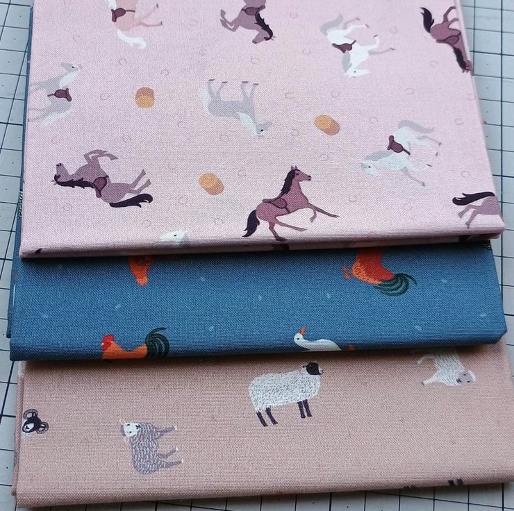 3 fat quarters, featuring horses, ducks and chickens and cows, sheep and pigs - ideal for country style or nursery decor. The scale of the Small Things prints makes them perfect for general crafting projects as well as patchwork quilts.