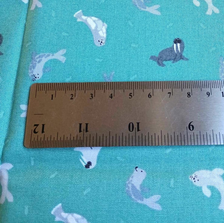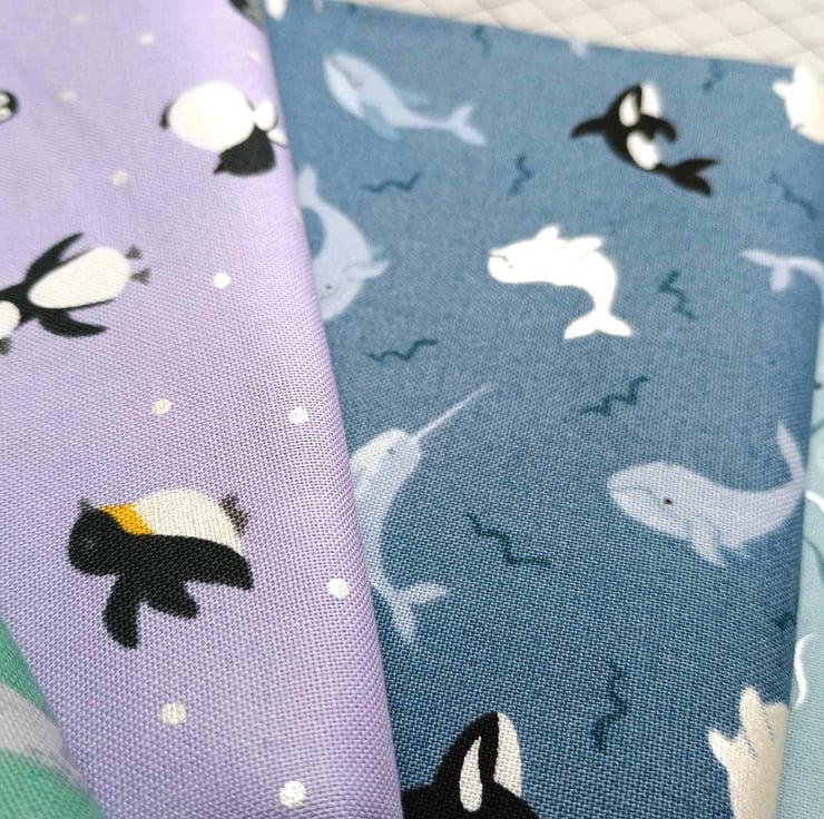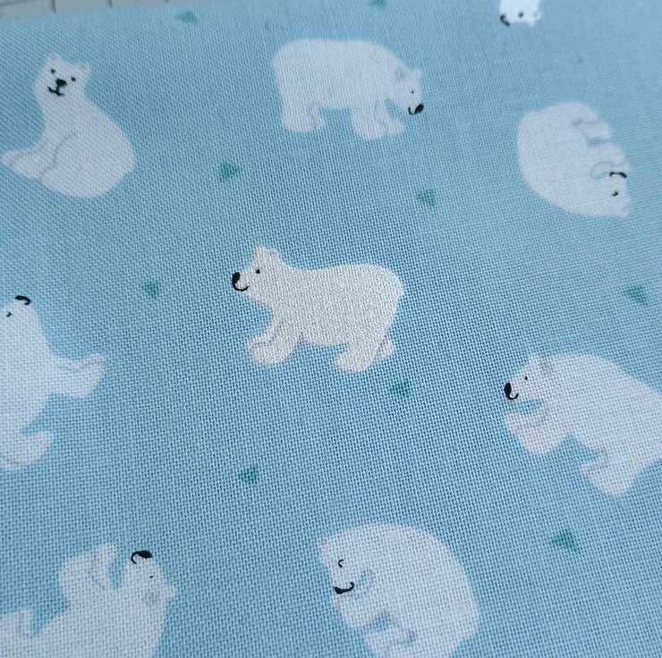 Artic animals - very pretty quilting cotton fabric with little penguins, polar bears, whales and seals, with pearlescent shading on a few for an extra hint of iciness.