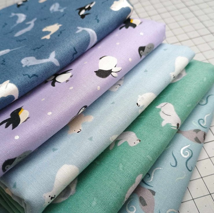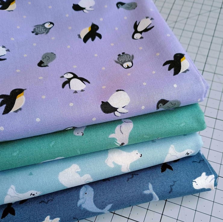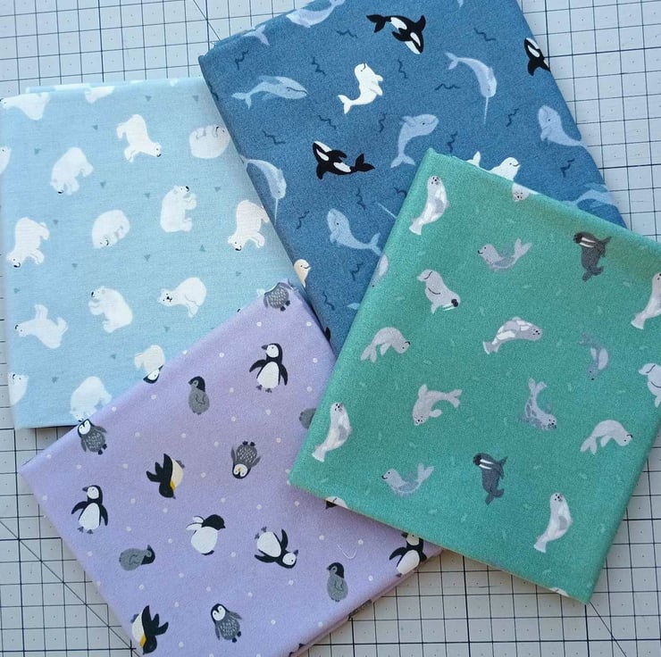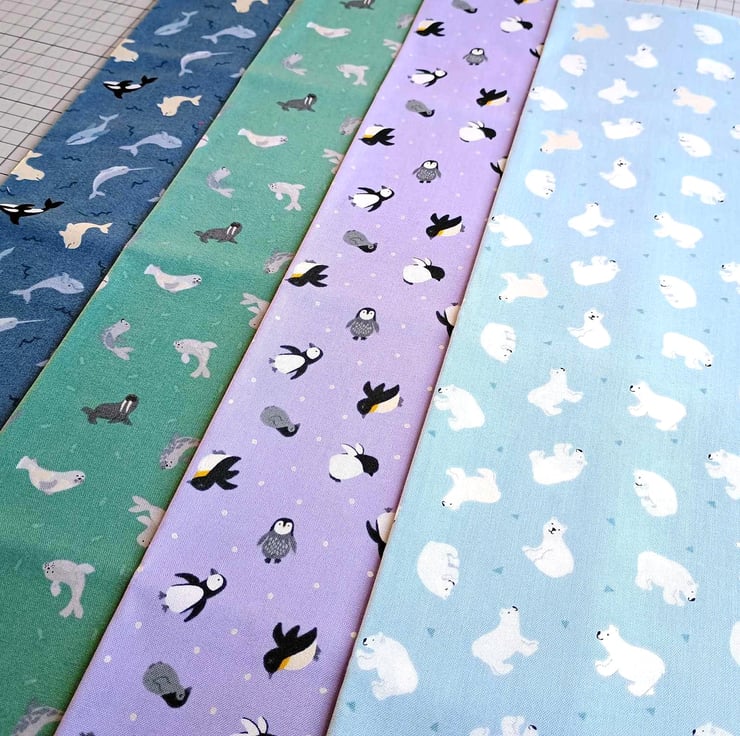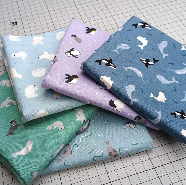 There are 5 fat quarters in the bundle, each with an artic animal on a different colour background.