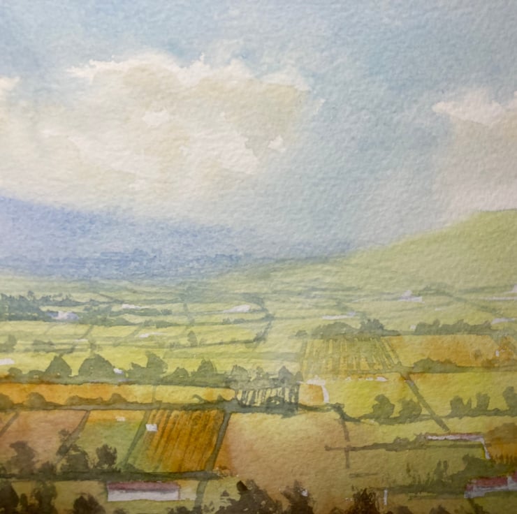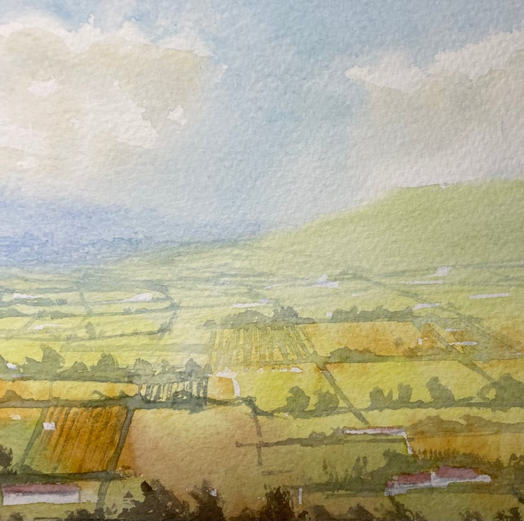 En plein air painting from the hills of Boosbeck looking toward skelton