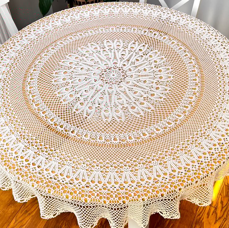 This tablecloth was inspired by my love for timeless elegance and intricate craftsmanship. I’ve always been drawn to vintage lace patterns and the delicate beauty they bring to a home.