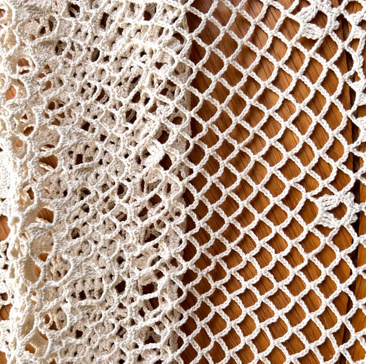 When I began this piece, I envisioned it as more than just a table covering – I wanted to create something that could become an heirloom, cherished and passed down through generations. The design, with its detailed lacework and classic motifs, was influenced by the vintage crochet doilies and table linens I admired in old family homes and antique shops.