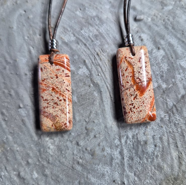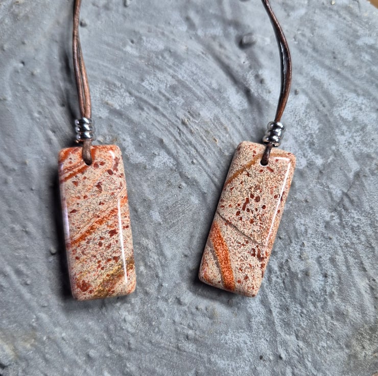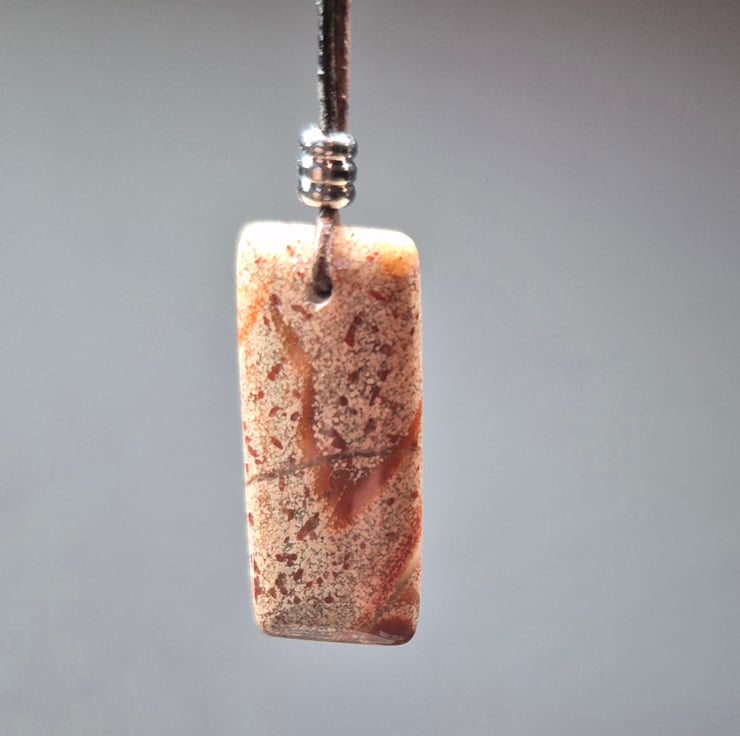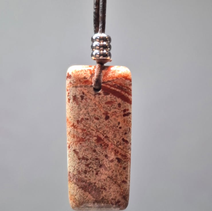 Rainbow Jasper Oblong pendant on Gypsy Sippa leather cord with stainless steel connector and sliders.