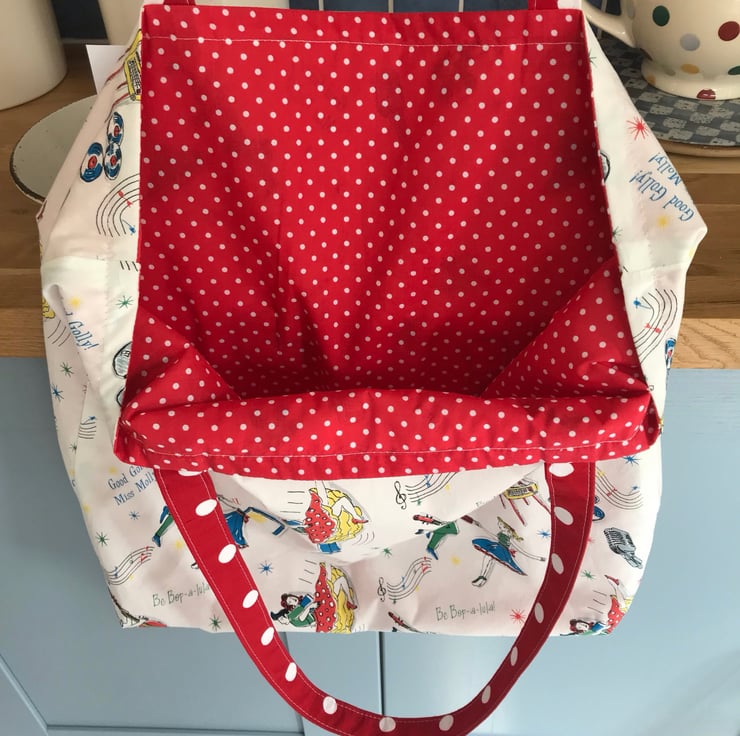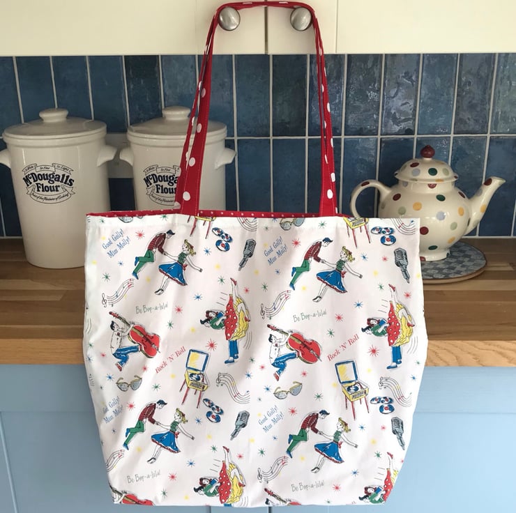 In a funky retro 50's style print this Toots Totes shopper tote measures approx 18 x 18 inches, so will hold a whole shop!