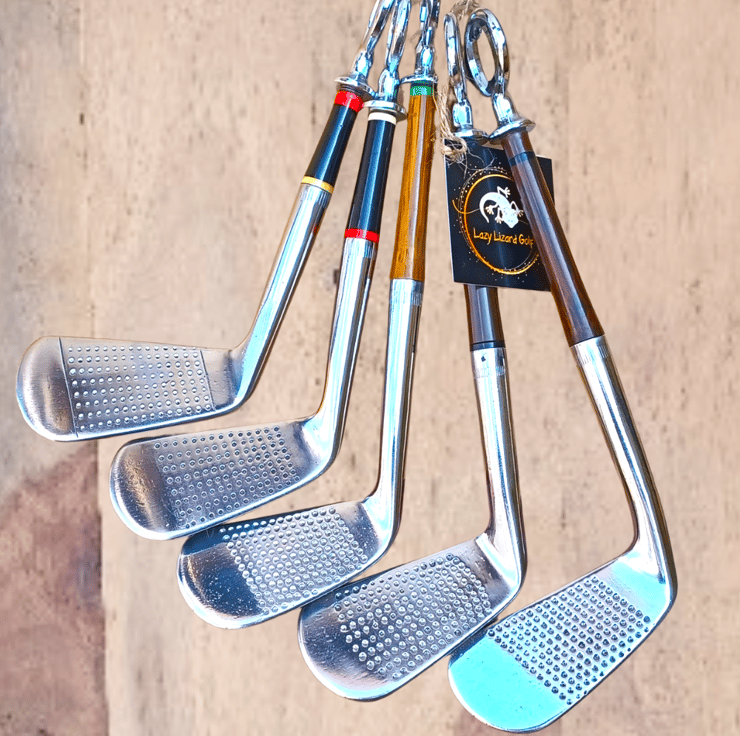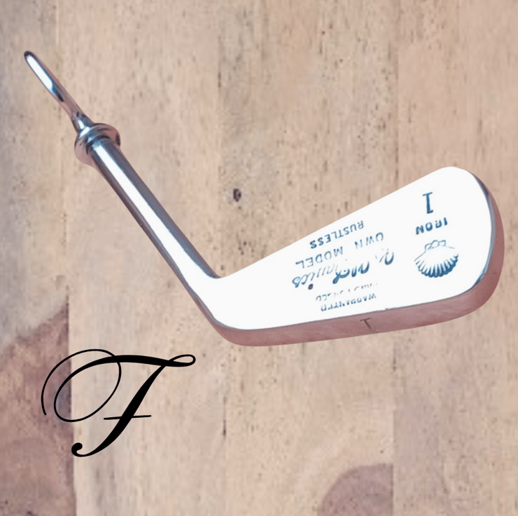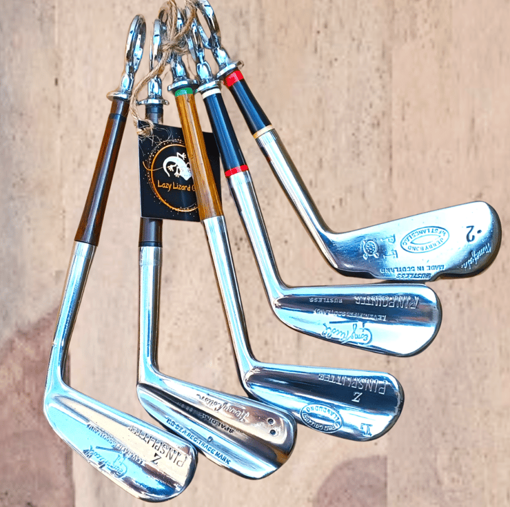 These golf club irons are individual & unique, true one offs that are definite conversation starters! The club heads are between 70 and 90 years old. They are long necked with the original ferule retained to enhance the vintage antique look.