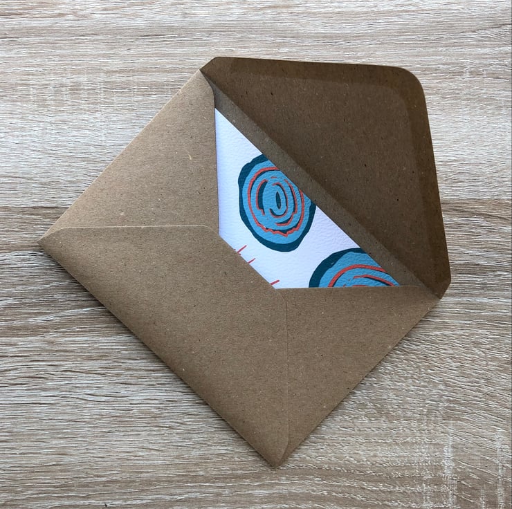 - 1 A6 birthday card. Comes with a recycled kraft paper envelope