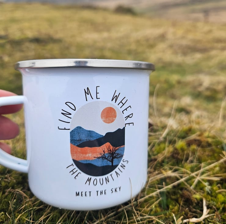 For those who feel most at home in the hills, this enamel mug is your perfect adventure companion. Whether you're sipping a morning brew at camp or warming up after a mountain climb, this mug is a little reminder of where your heart truly belongs – high above, where the mountains touch the sky.