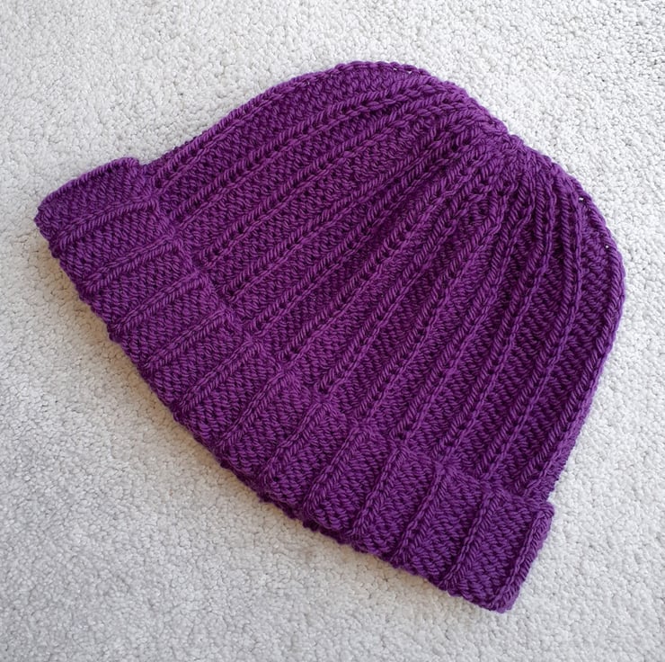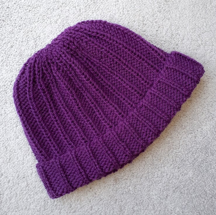 This hand knit PATTERN is for a beanie hat. To fit adult. Circumference: 53 cm or 21 inches. The hat is knitted using Aran yarn and 5 mm knitting needles. The hat is knit flat and seamed or knit in the round.