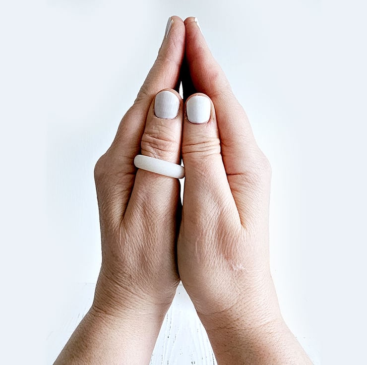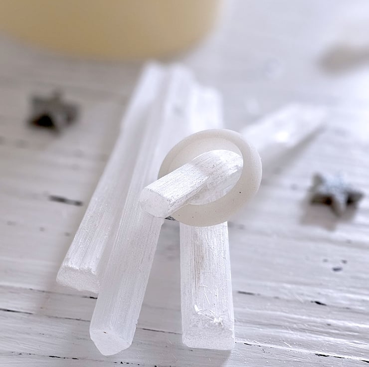 Connect with moon magick using this simple Selenite Moon Ring. Made with real selenite crystal encased in white resin, shaped then smoothed to a milky, matt finish. Helps to strengthens psychic abilities and enhances meditation. Ideal for full moon rituals or as a mood ring for daily balance.