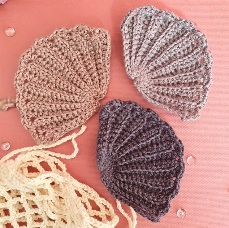 Both the face wipes & the wash bag are hand crocheted with 100% cotton yarn. The set compromises of 1 wash bag in off-white & 7 wipes, out of which 2 are in light grey, 3 in dark grey & 2 in latte brown. They are in the shape of a seashell and they measure approx. 10x7cm (widest points). They can be used with your usual cleanser or water to remove make-up. Rinse them after use, shape & lay them flat to air-dry & reuse them. Wash them regularly in the wash bag, which can also be used to store them. The wash bag measures approx. 10.5x13.5cm.