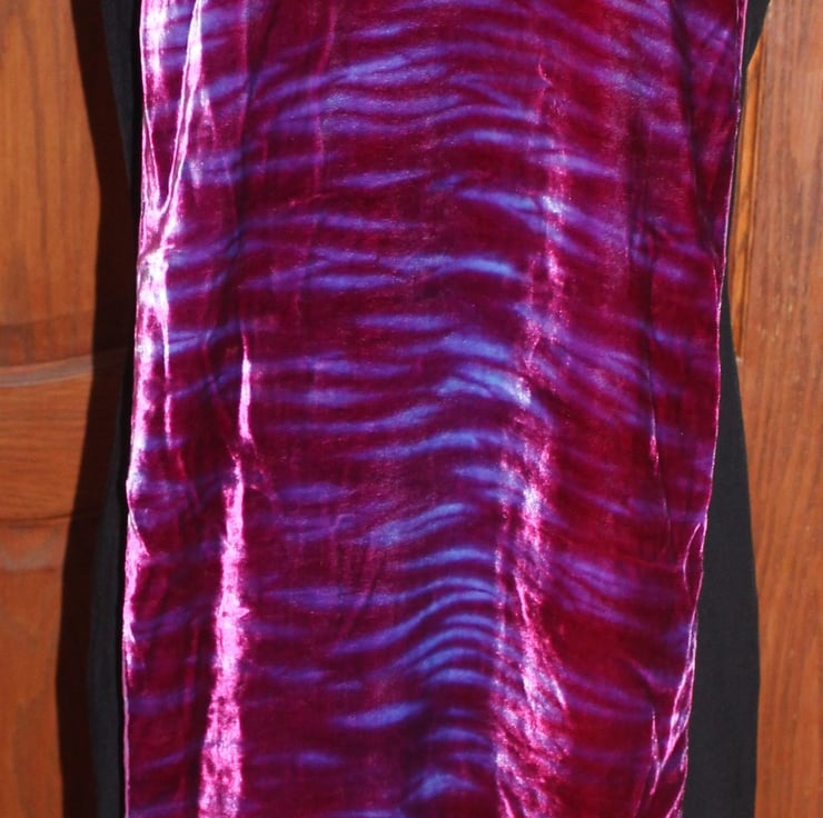 I went to an exhibition of shibori dyed scarves and clothing. I hadn't heard of that technique before. I bought books about it and had a go, on cotton, initially. When I had more experience, I tried silk and silk velvet