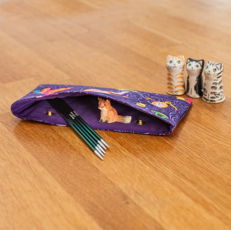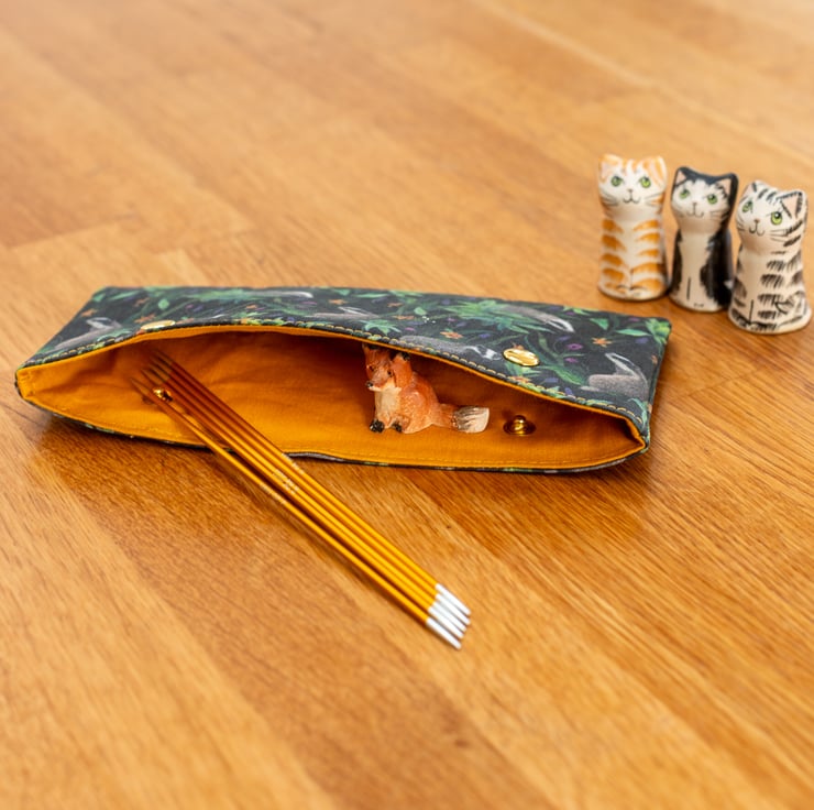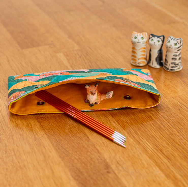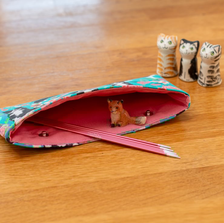 Each cosy is handmade using high-quality cotton prints, lined with a coordinating solid cotton, and reinforced with interfacing and fleece for added structure and protection. The sturdy metal snap closure ensures your needles and stitches stay secure.