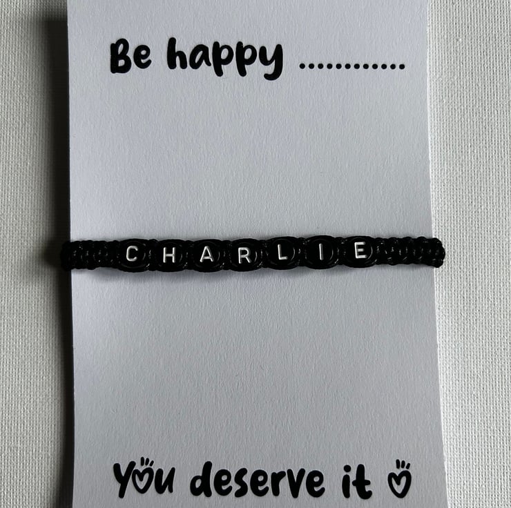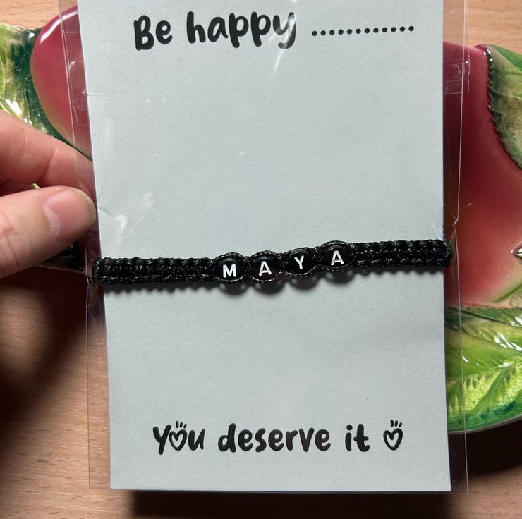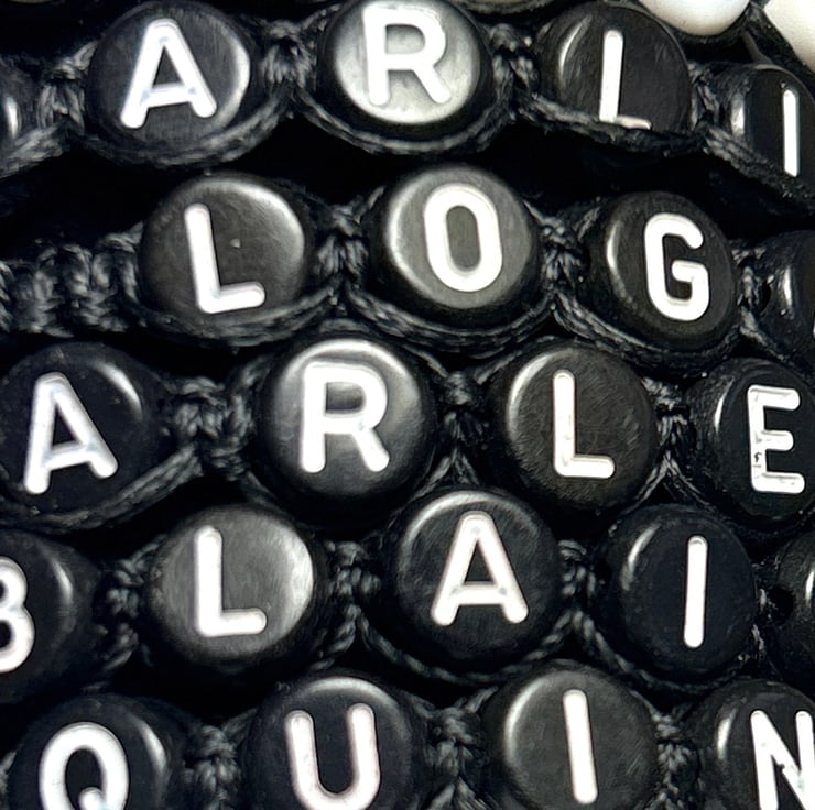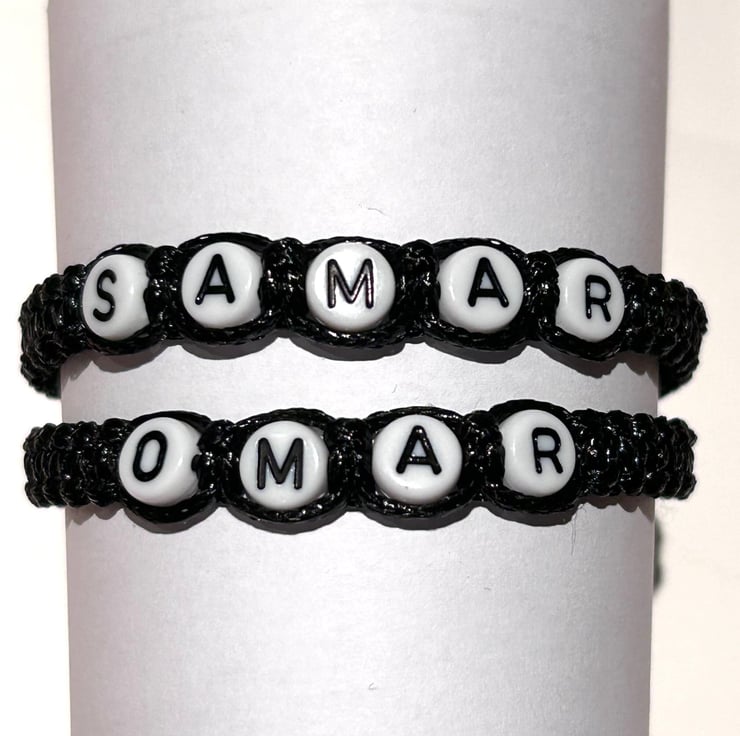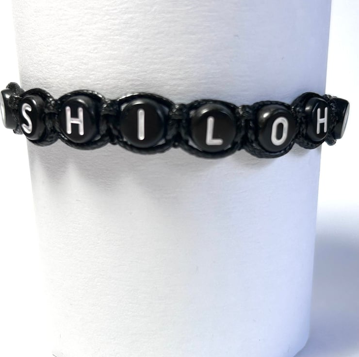 This custom name bracelet is hand woven using black or white beads bracelet and fully adjustable.
