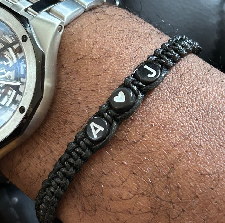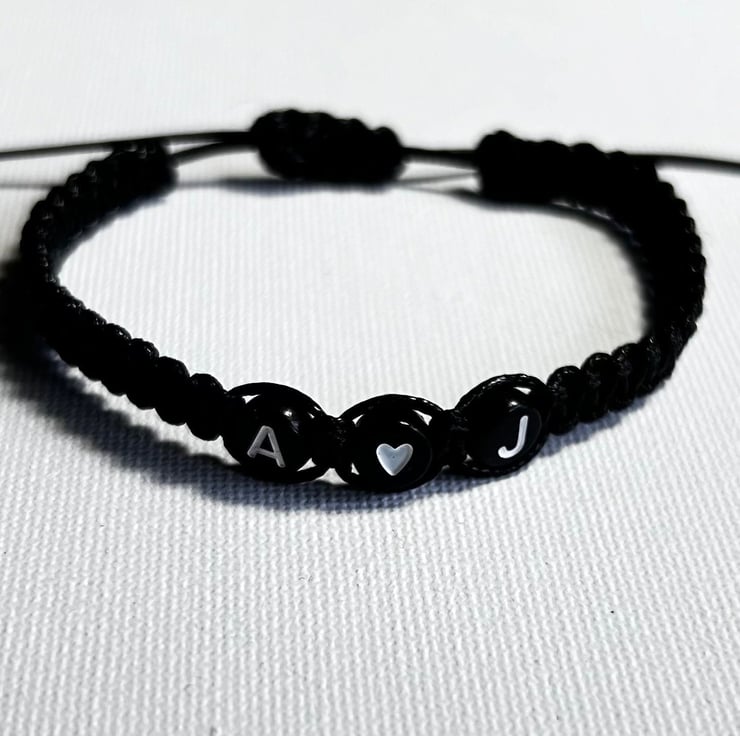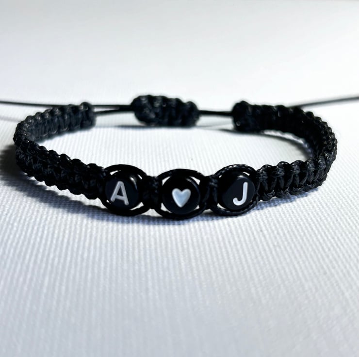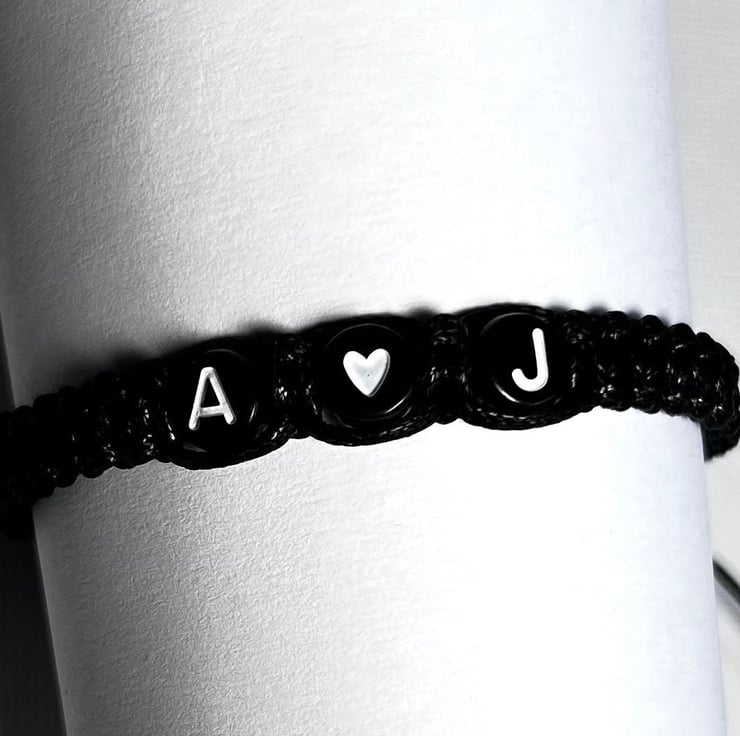 Couples initials bracelet with heart bead gift for girlfriend or boyfriend, husband or wife. Buy one as a gift or two matching bracelets with initials reversed to mark a special occasion or just to show them you love them.