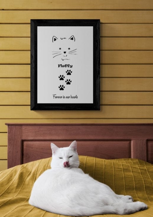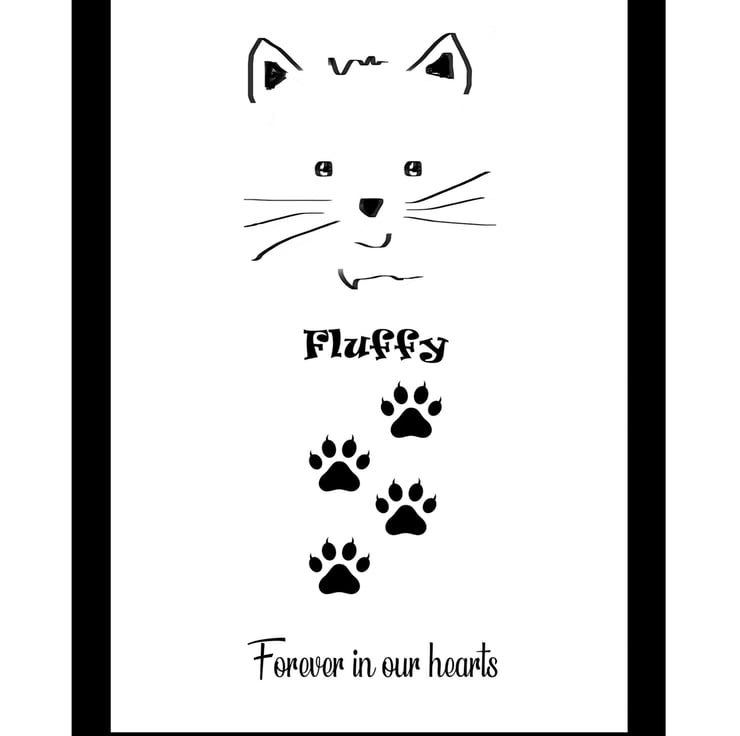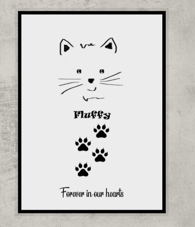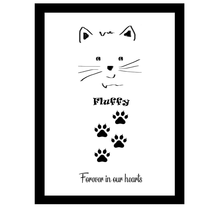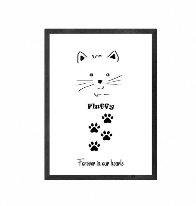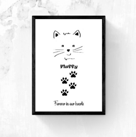 Cat or other pet loss memorial print. Personalized to order this framed print can be made with other animals other than the cat shown