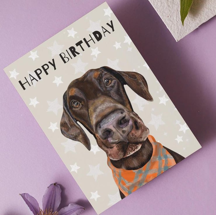 Looking for the perfect card for a dog lover? Check out this handsome Doberman birthday card!