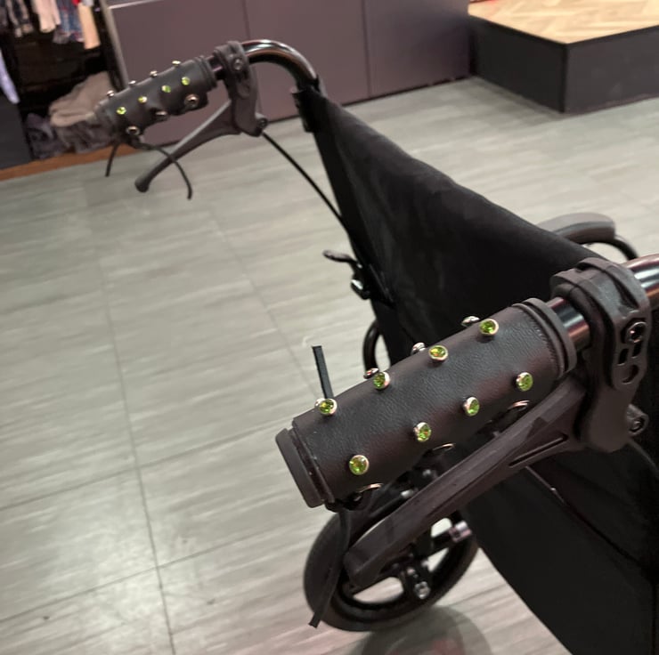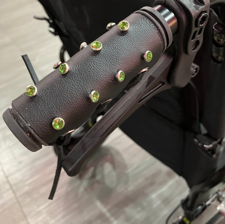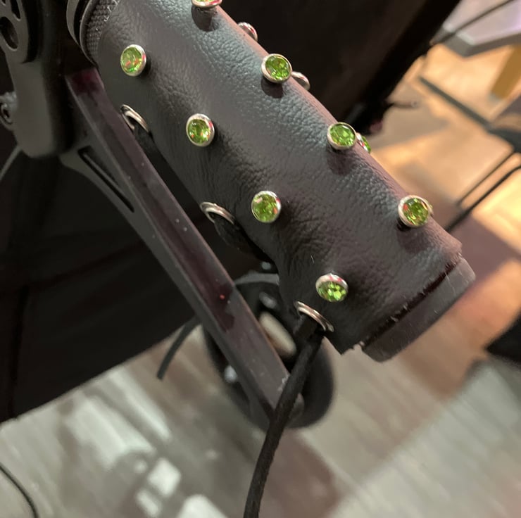 Black Leather Wheelchair Handle Decorations with Green Gemstones