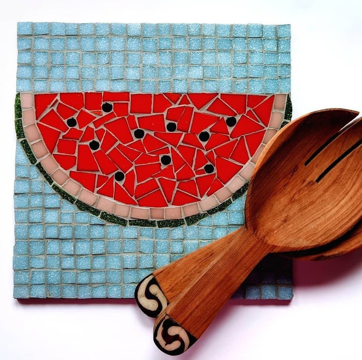 Who doesn't love a slice of juicy watermelon! This summery and bright red mosaic kit is a great place mat or trivet for your kitchen and also comes with hanging holes if you decide you d rather display it as a piece of hanging wall art. Posted from the Roman City of St Albans (UK) in a small packaged box, perfect for you or makes an ideal gift!