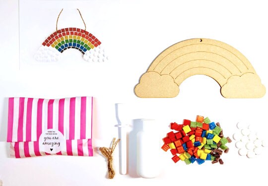 Inside each kit, you'll find everything you need to create your own stunning rainbow mosaic masterpiece. With a variety of colorful mosaic tiles and an easy-to-follow guide, crafting your mosaic has never been easier or more enjoyable.