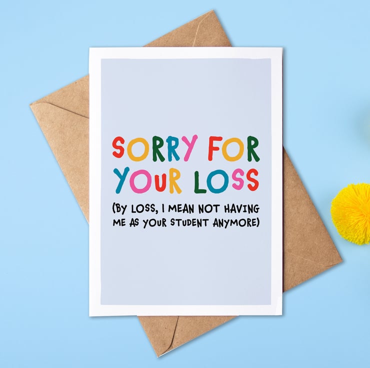 This funny sorry for your loss card is the perfect card to send any teacher, lecturer or trainer to thank them for all the support.