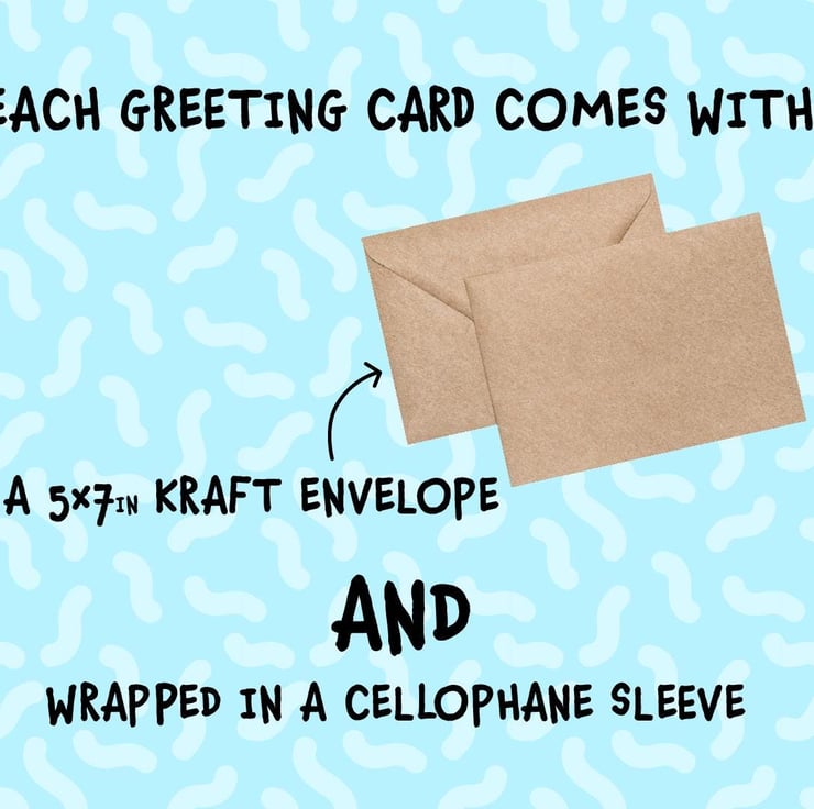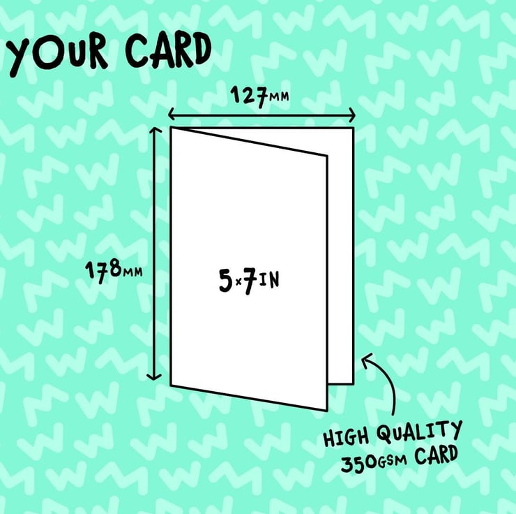 Our cards are printed on high quality thick 300gsm card which are 7x5 size when folded and comes with a craft envelope. Each card is packaged into a cellophane sleeve to protect it while it s on its away to you. Then everything is put into a board backed envelope to make sure it arrives in perfect condition.