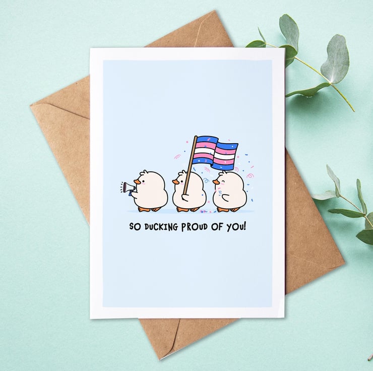 Let someone know how ducking proud you are of them for living as their authenticate self! The perfect card for anybody recently coming out as trans or just because in a tough world you want to send some love.