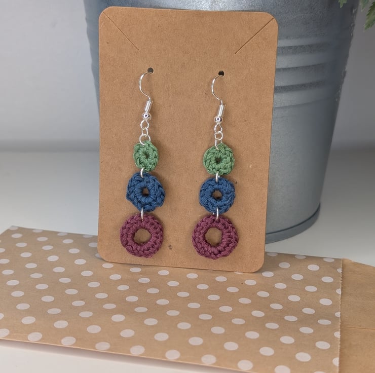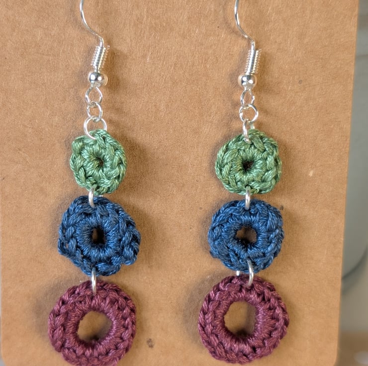 Triple hoop dangle earrings in lovely earthy tones. Handmade by me!