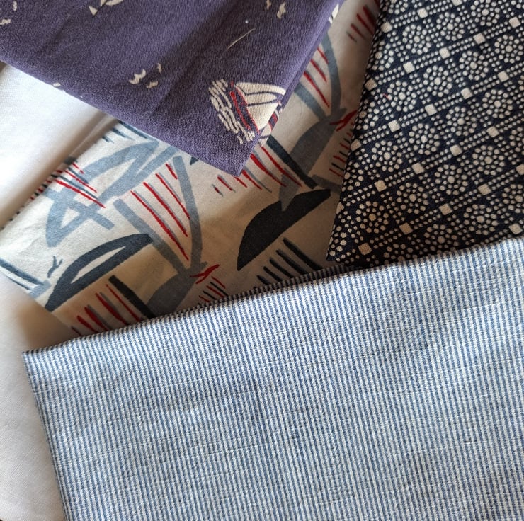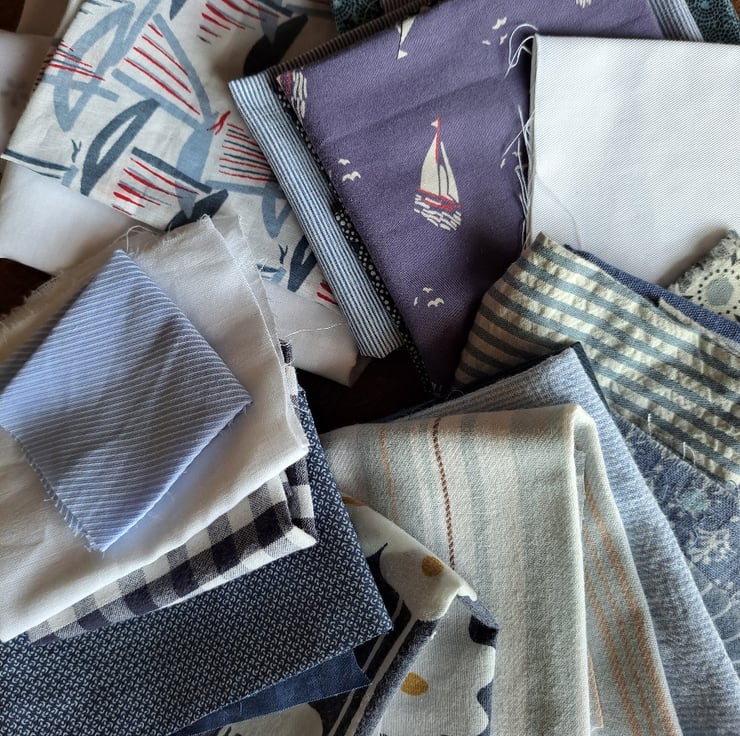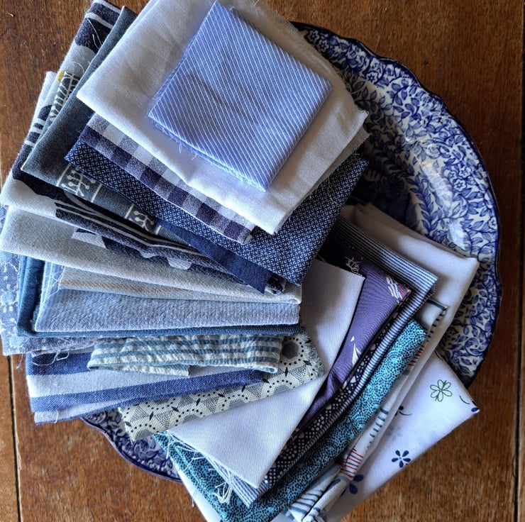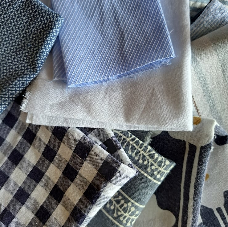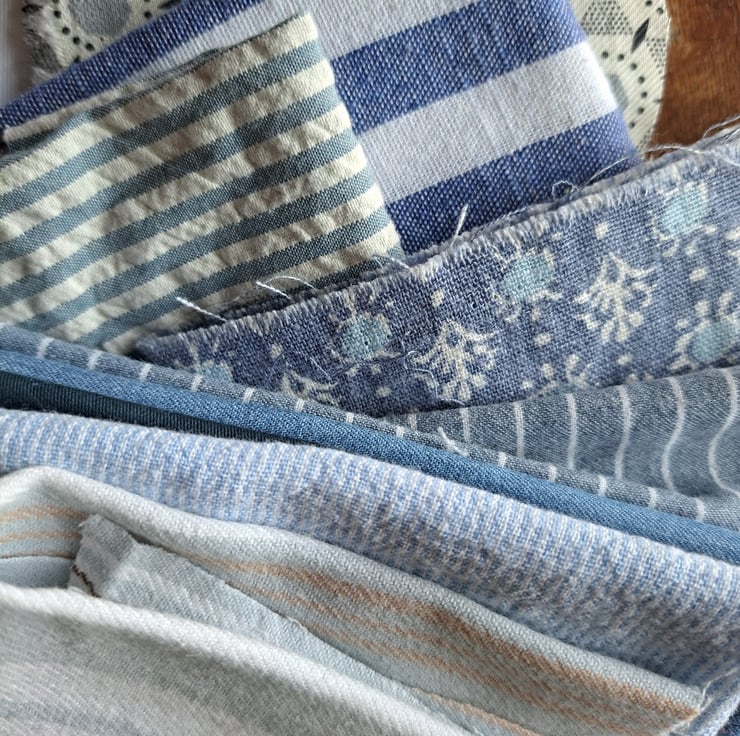 Loads of blue and white, here. Well over 20 assorted pieces of cotton and linen, which have been rescued and repurposed and added to to the only bundle you'll need for your blue and white textile project.