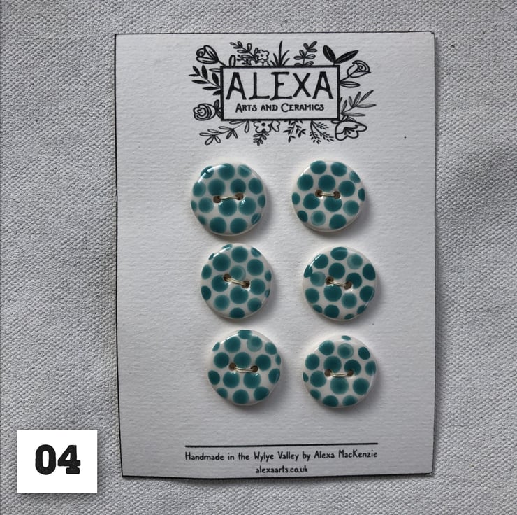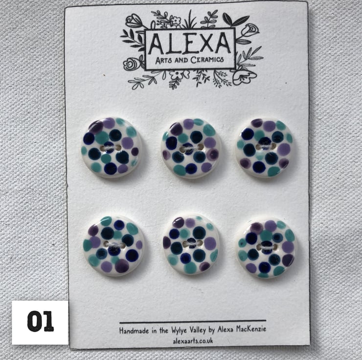 Hand-made and hand-painted buttons, in spots and swirls. Size - 20cm diameter