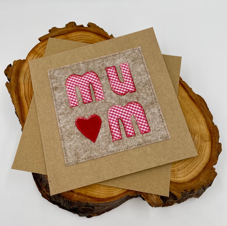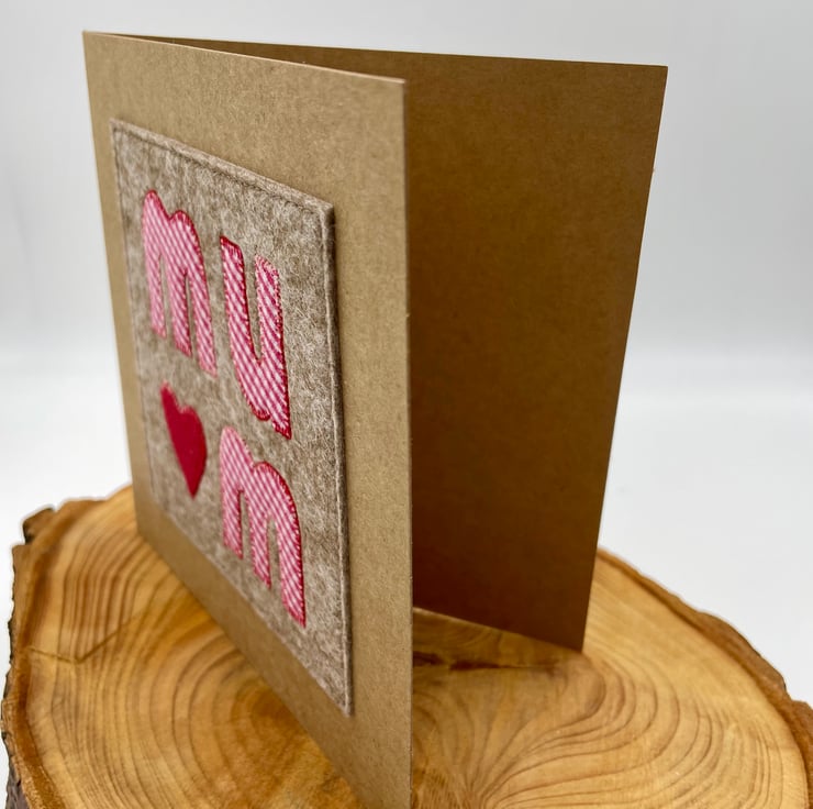 A little love, stitched just for Mum! This charming appliqué card features ‘MUM’ carefully crafted from fabric, with a sweet little red velvet heart adding a touch of warmth and love. Lovingly stitched onto soft wool felt and set against a recycled card, it’s a beautiful keepsake to let Mum know just how special she is. Perfect for Mother’s Day, birthdays, or just because—because Mum deserves a little extra love, always!