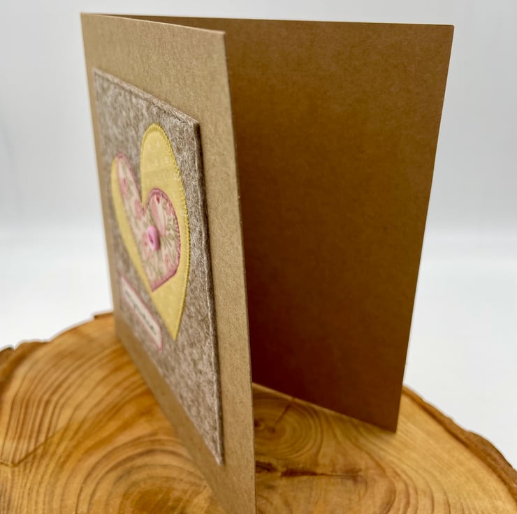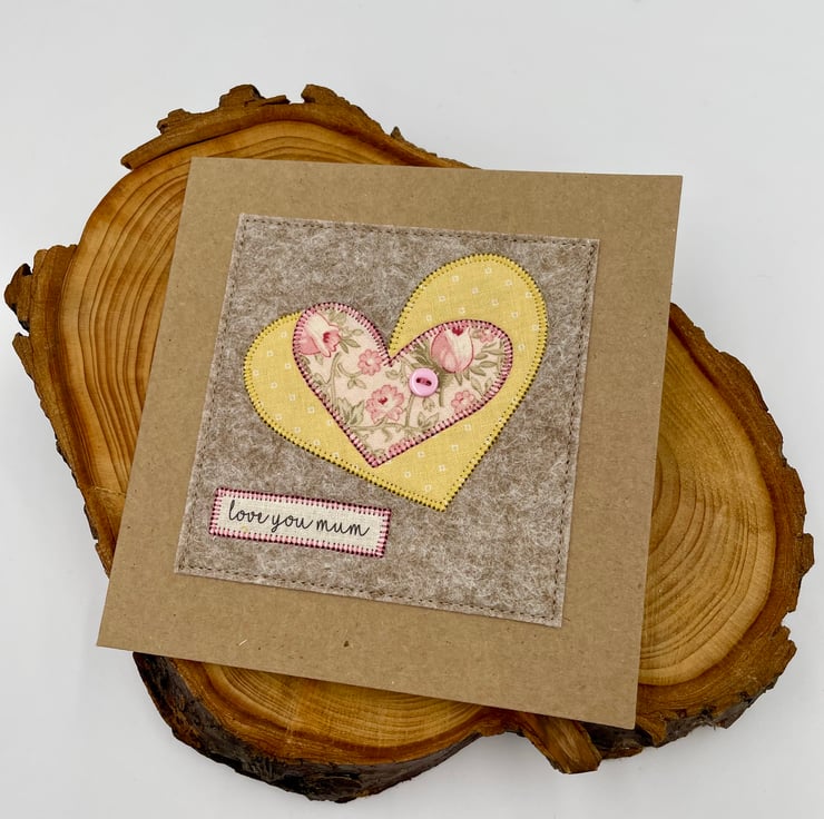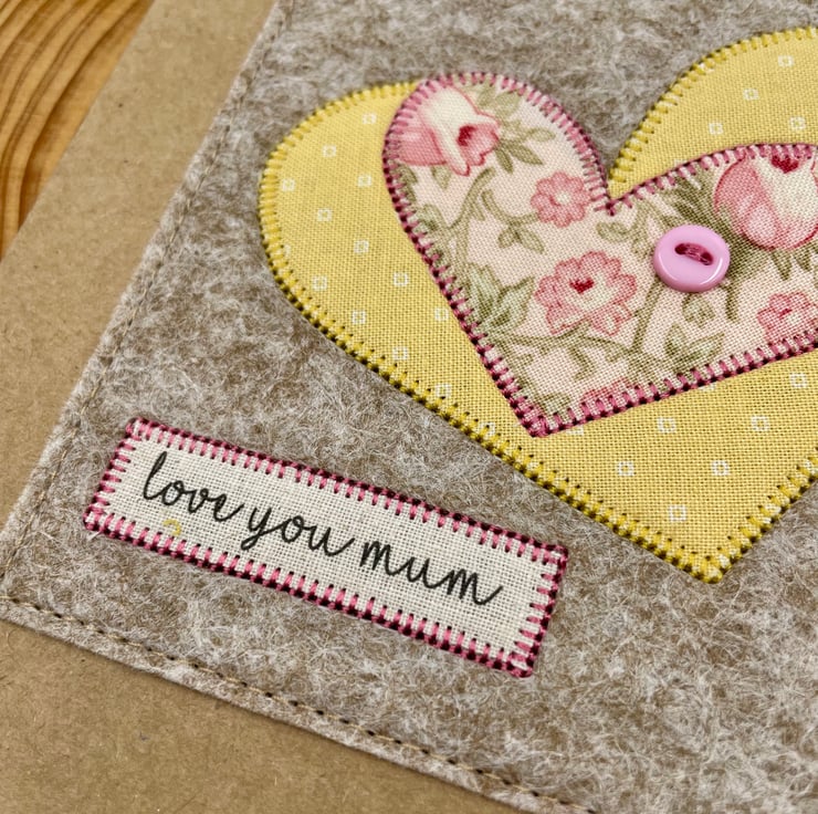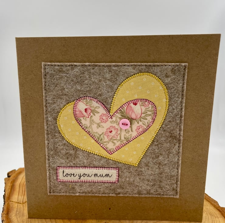 A heartfelt token of love for a wonderful Mum! This beautiful card features two pretty fabric hearts, carefully stitched to create a charming handmade touch. A sweet button detail adds extra charm, while the ‘Love You Mum’ message is delicately embroidered onto soft wool felt. Set against a recycled card, it’s as thoughtful as it is lovely—perfect for showing Mum just how much she means to you! Perfect for Mother's Day, birthdays or just to let your Mum know that you love her anytime of year.