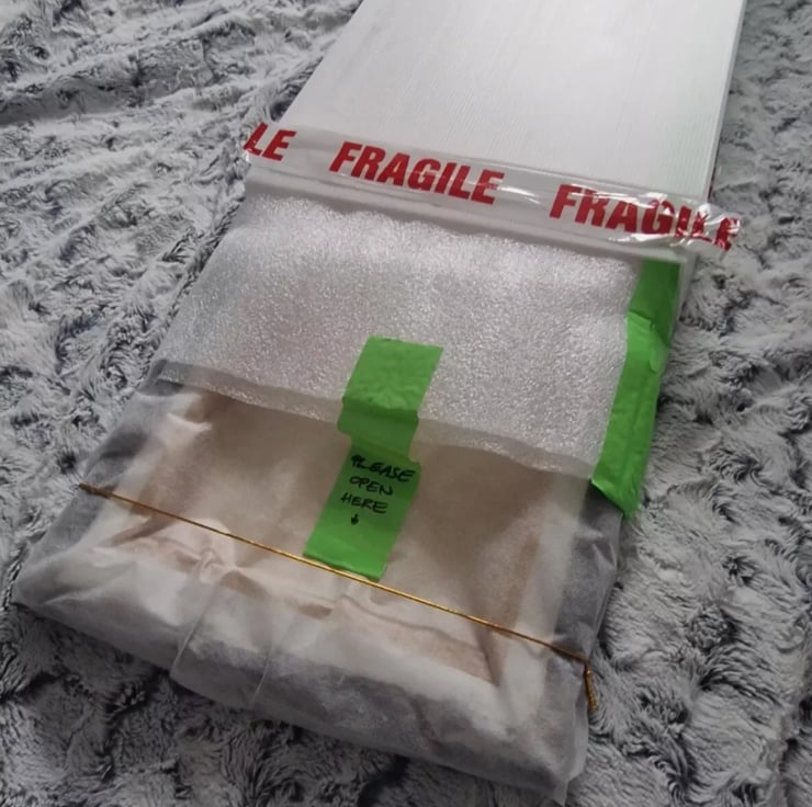 Standard return policy applies extended with a requirement in a case of return, that the customer must return the painting in the original packaging. Adhesive tapes may vary, but the stick-proof preservation grade wrap, the shock-proof jiffy foam casing and the plastic corrugated board box external shell which protects the painting during transport is essential. Thanks for understanding.